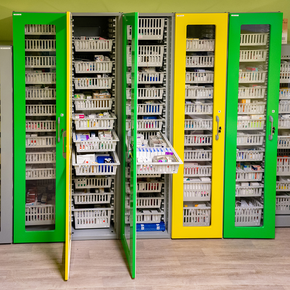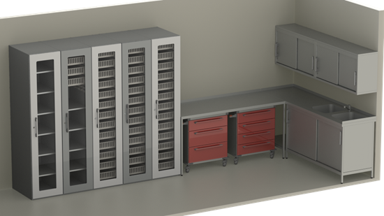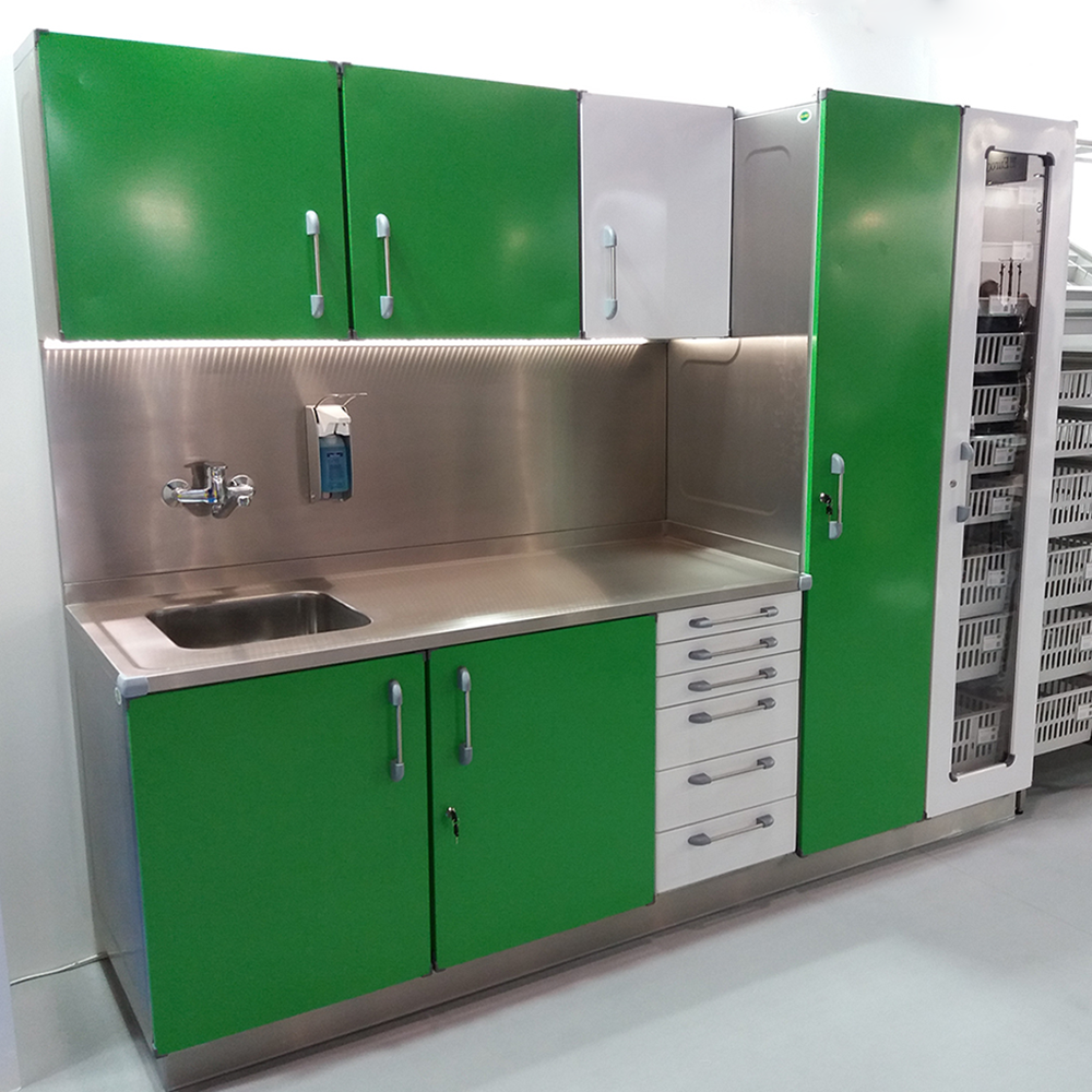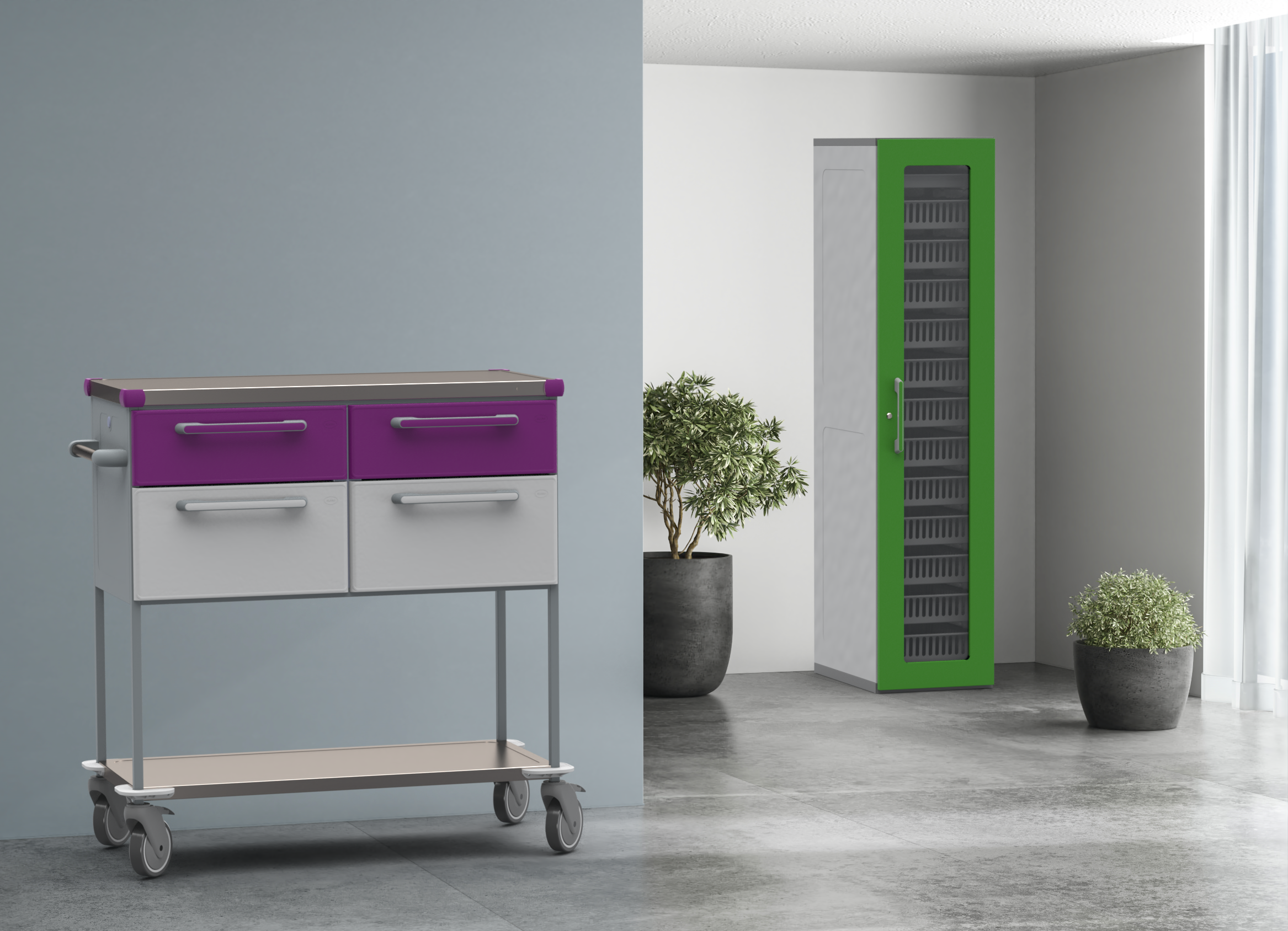 Nabízíme návrh kompletních sestav nábytku, vozíků a dalšího vybavení pro sesterny, ordinace, pokoje nebo jiné místnosti v zařízeních pro zdravotní nebo sociální péči. Návrh vytvoříme individuálně, dle Vašeho zadání, a jednotlivé prvky vybavení můžeme přizpůsobit, co se týká barevného provedení, konstrukčních požadavků (například nosnost), případně použitých materiálů.
